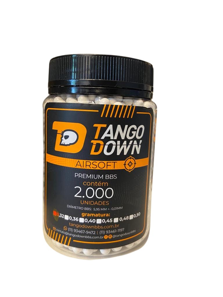 As BBs Airsoft Tango Down estão na categoria de BBS Premium, passam por um rigoroso processo de polimento e testes de qualidade que tornam seu desempenho de altíssimo nível em qualquer diâmetro de cano entre 6,01mm e 6,08mm.